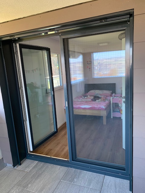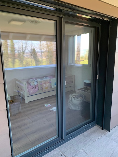 Insektenschutz-Schiebetür Insektenschutzschiebetür in der Standardfarbe RAL 7016 anthrazit. Das Gewebe ist das fast unsichtbare „Transparent-Gewebe“. Das könnte Sie auch interessieren: