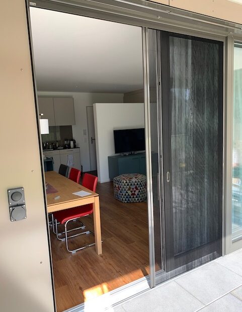 Insektenschutztürplissée von Neher in Sonderfarbe. Das Plissee wurde von uns auf speziellen Kundenwunsch geklebt montiert. So kann das Plissee später spurlos wieder entfernt werden.