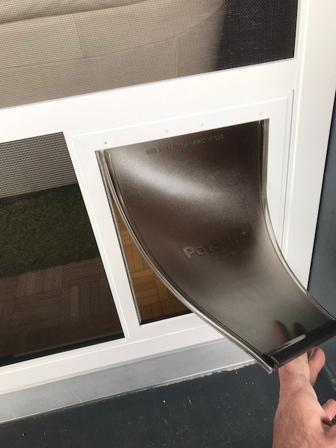 Insektenschutzschieberahmen mit Katzenklappe
