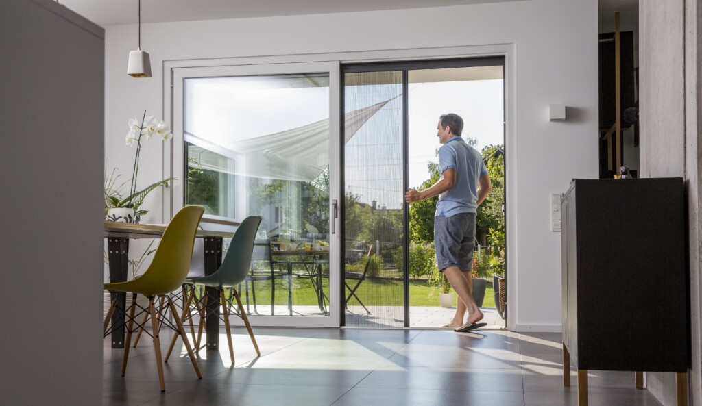 Auch an großen Hebe- und Schiebetüren lässt sich ein Insektenschutz Plissee ideal anbringen. Und trotz der Größe bleibt es kinderleicht und mit geringer Kraft bedienbar. Durch die integrierten Spannschnüre verkippt es nicht und bleibt in jeder gewünschten Stellung stehen.